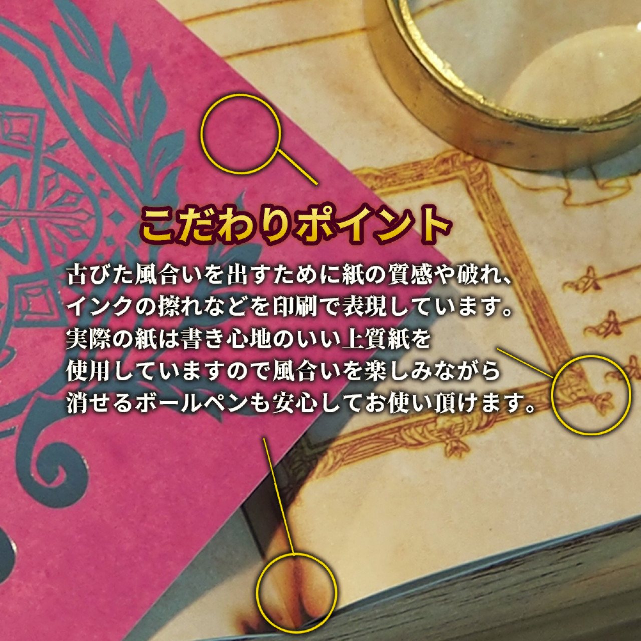 印刷によって紙の古い質感を出していますが実際はさらっとした紙なので