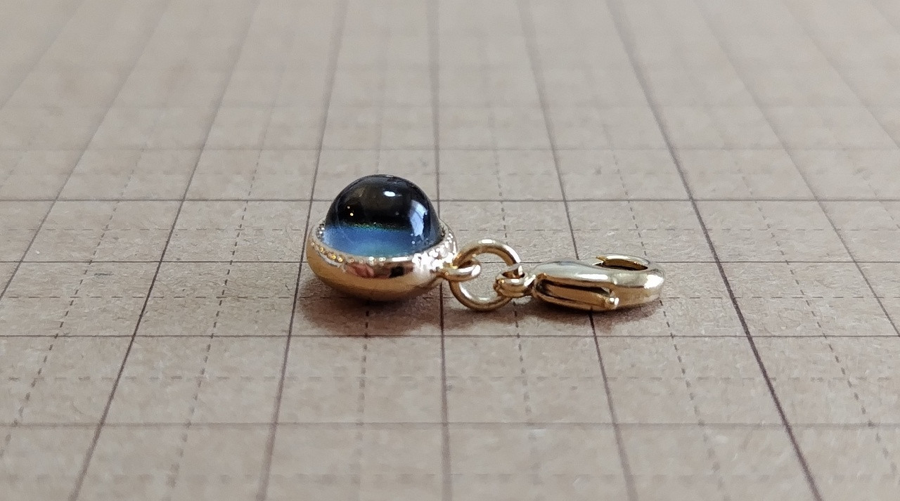 温度で色が変わるアクリル製のカボションを使用したチャームです。