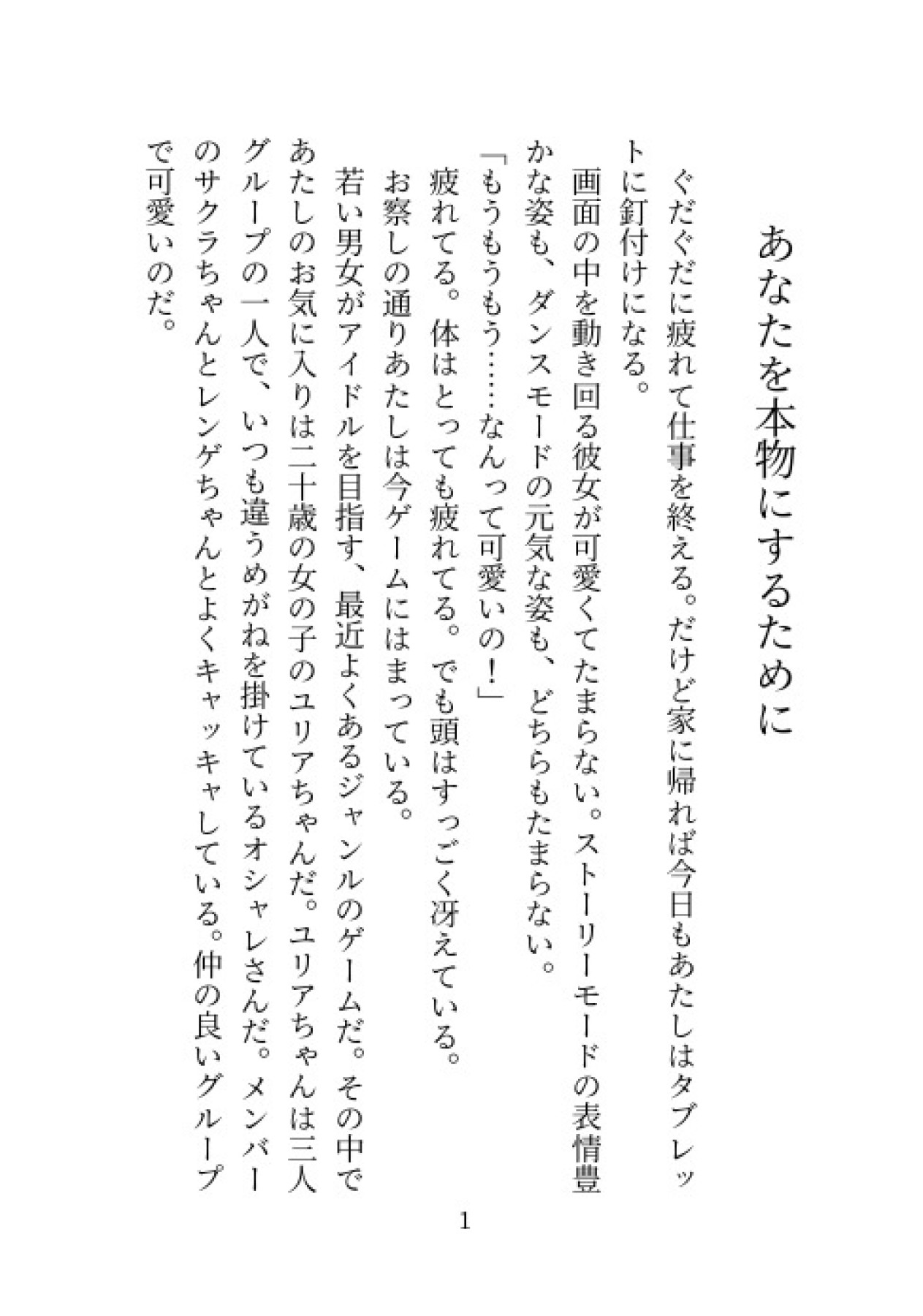 「かわいいは正義」をテーマに四つの愛を書いた短編集。 ただし恋愛ものというよりも、推しへの愛や家族愛などが近いです。軽い文章でサクッと読める本になっております。 ※手製本のため歪みがありますこと、ご了承ください。