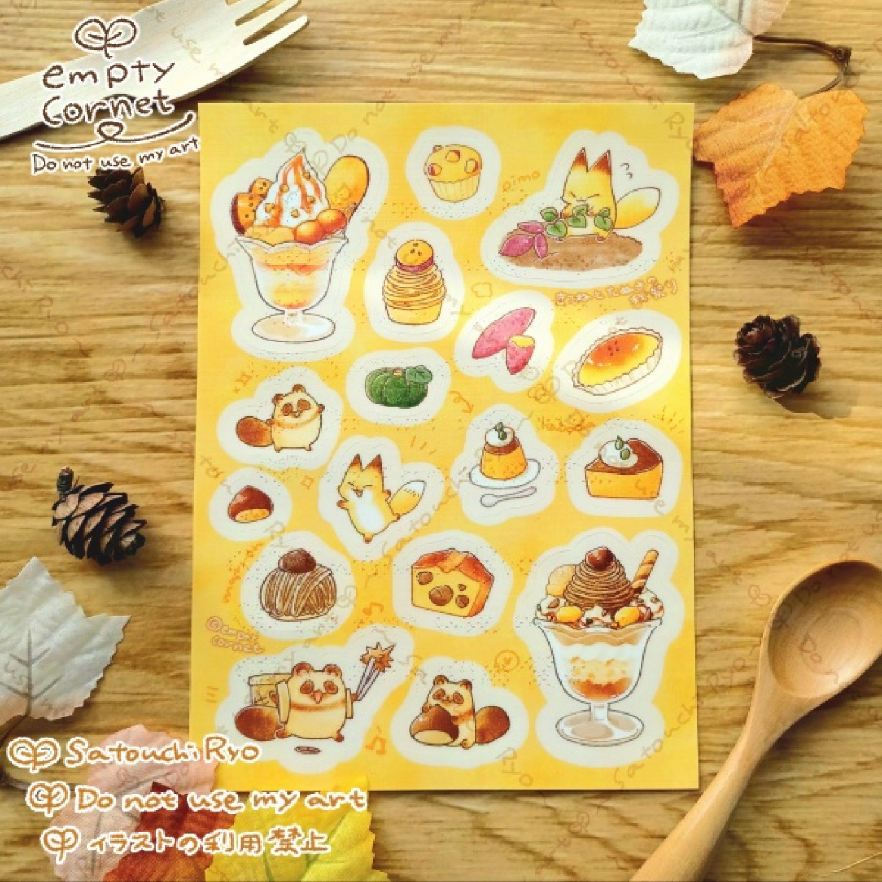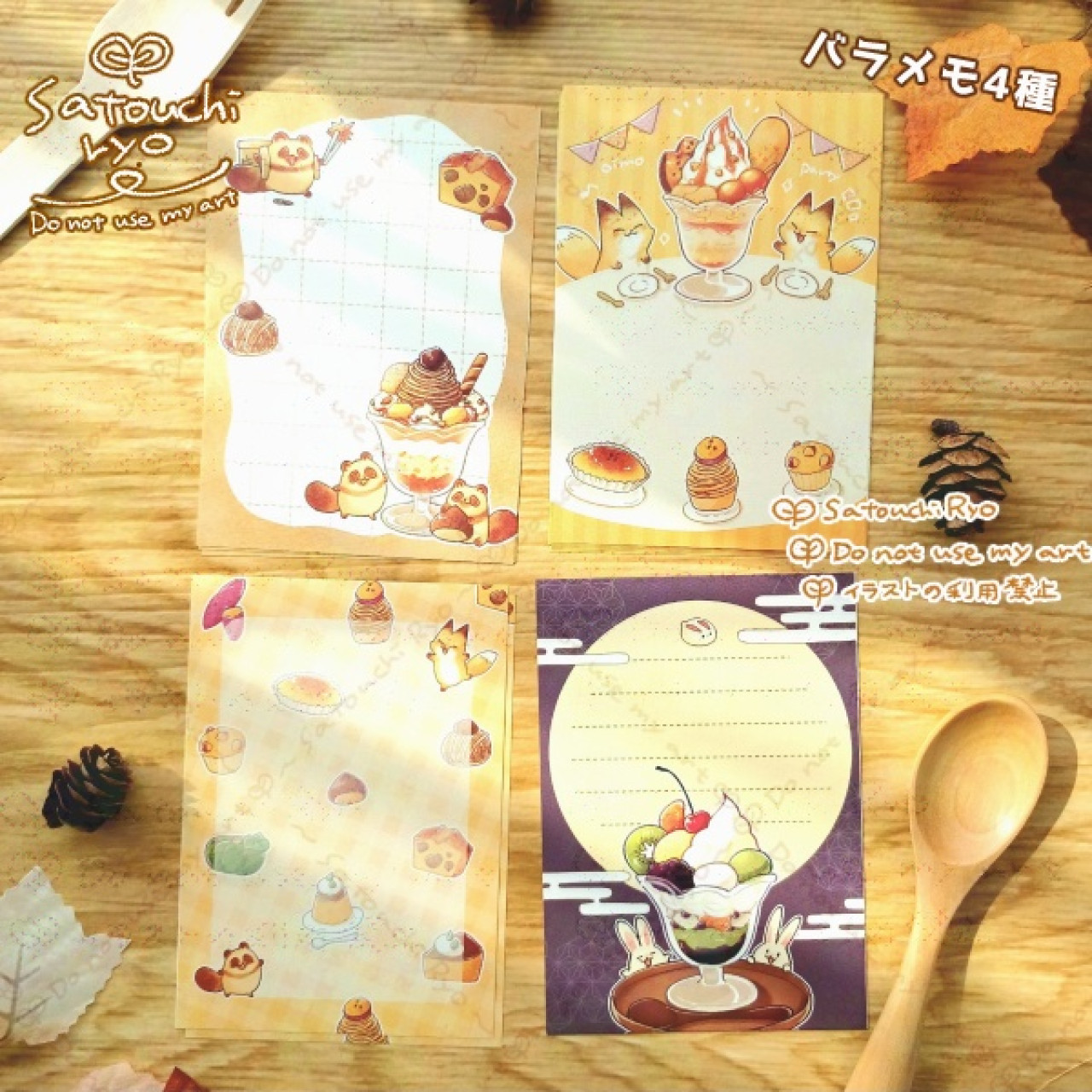 秋のほっこりおやつをテーマにしたイラストの、紙モノグッズのセットです!