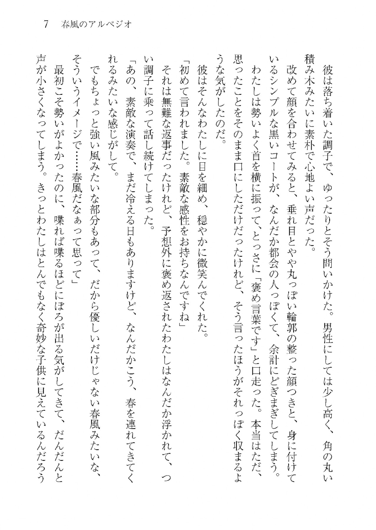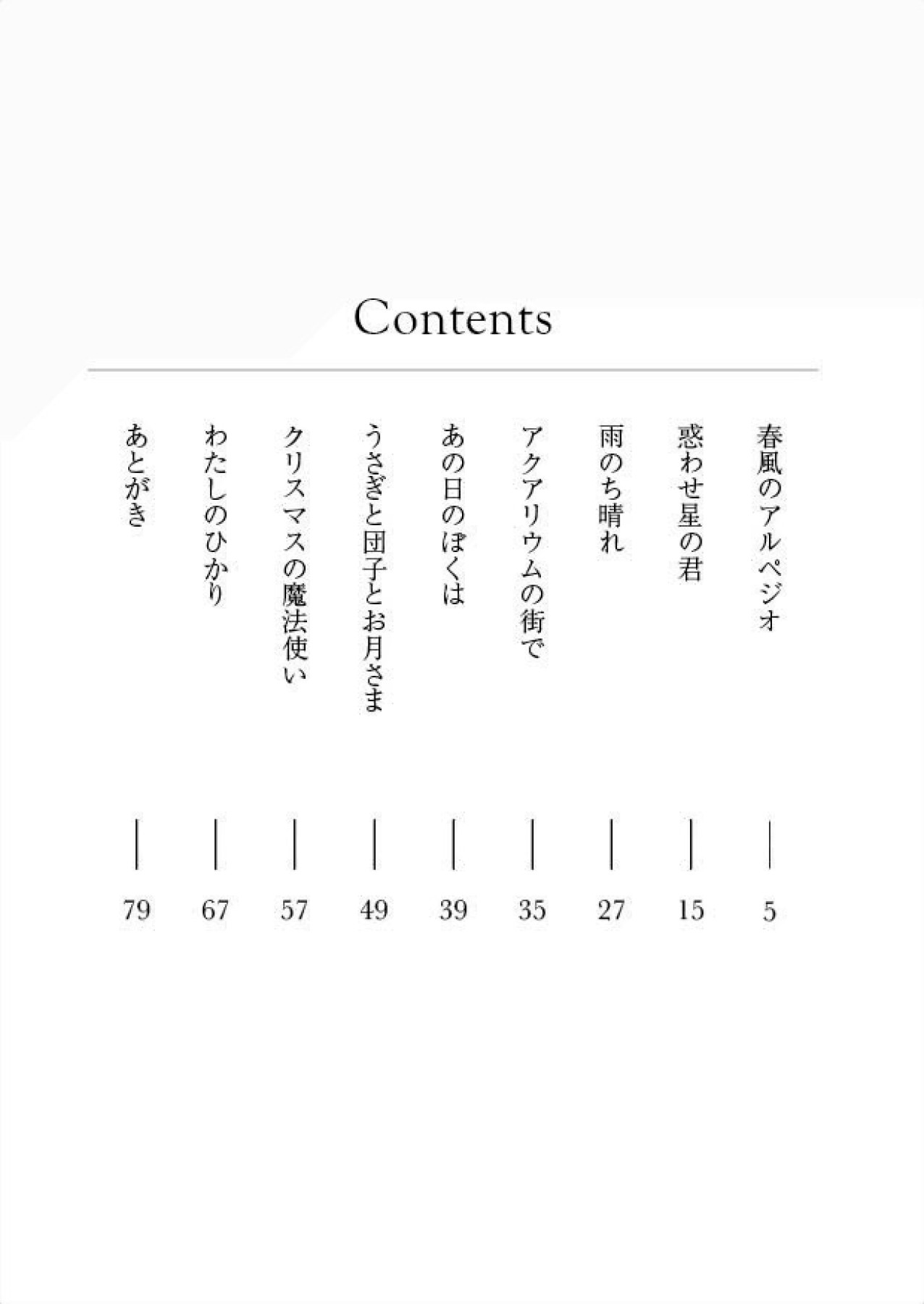 不登校の少女とギター弾きの青年の交流を描いた「春風のアルペジオ」、火星を舞台に少年少女の小さな冒険と淡い恋を描いた「惑わせ星の君」など、やさしい世界観の物語を詰め込んだ青春掌編小説集。 Web掲載作品や書き下ろしなど、全8篇を収録。 <収録作品> 春風のアルペジオ/惑わせ星の君 /雨のち晴れ/アクアリウムの街で/あの日のぼくは/うさぎと団子とお月さま/クリスマスの魔法使い/わたしのひかり