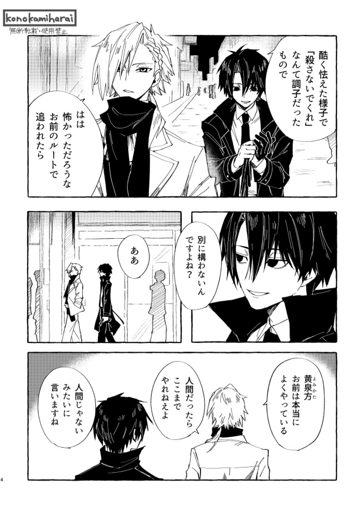 越由智幸(上司)×黄泉方白逢(部下)のcpシリーズ。ブロマンスの場合もシリーズに含まれます。