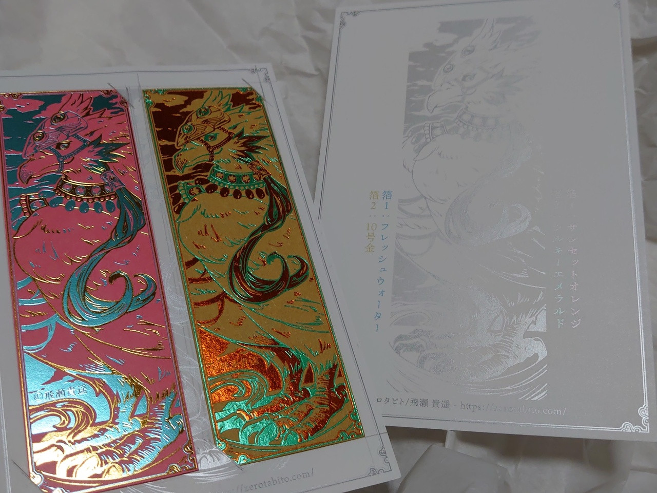 箔押しのしおり2枚セットです。 写真2枚目のように、台紙に挟んだ状態でのお届けします。
