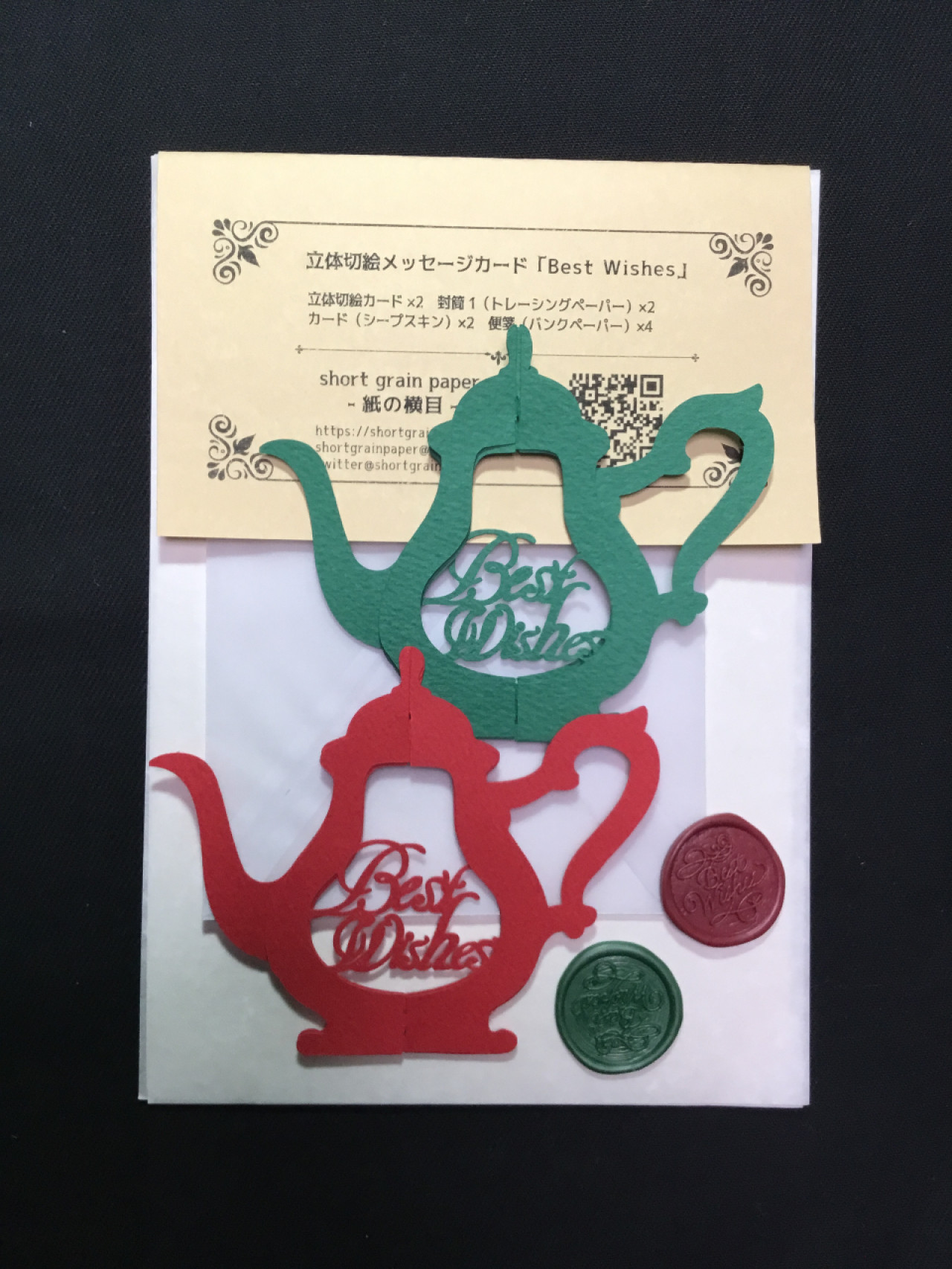 立体切り絵メッセージカード『Best Wishes』赤・緑