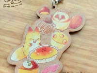 秋のおやつ&きつねとたぬきのイラストを、木製キーホルダーにしました!