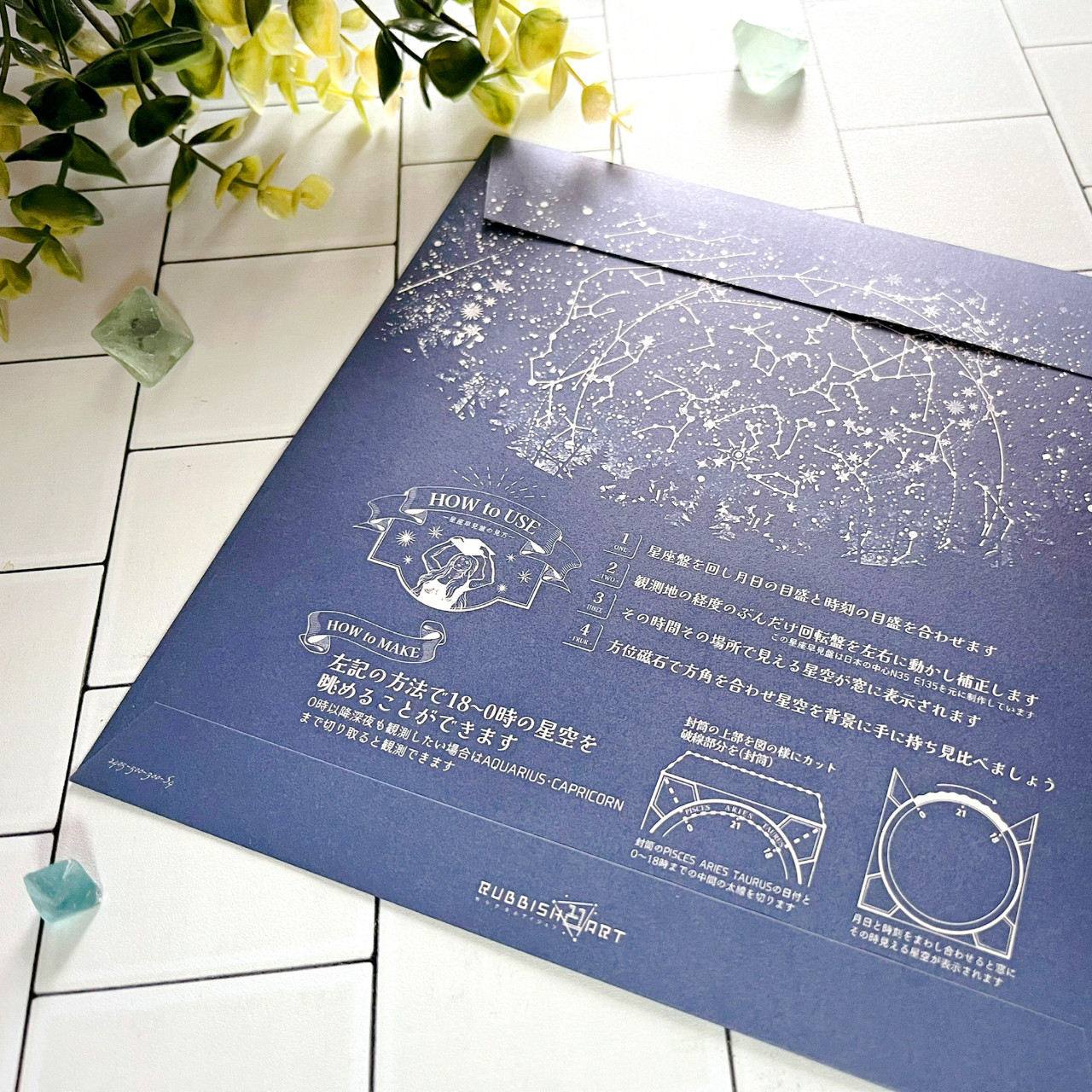 封筒も封を開けると銀河鉄道がうっすらと見えるように工夫しておりこだわりが詰まった早見表です。