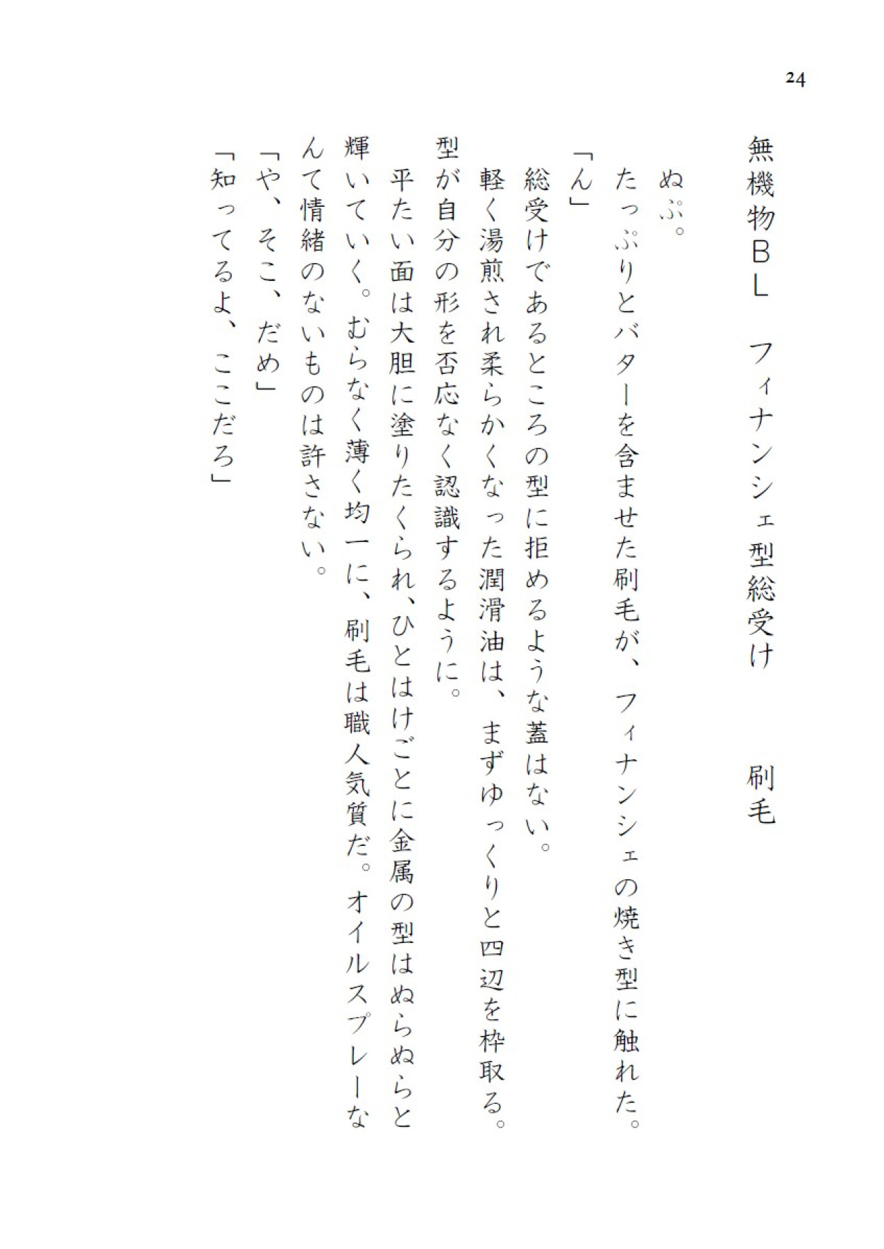どさくさに紛れて「無機物BL フィナンシェ型総受け」も収録。