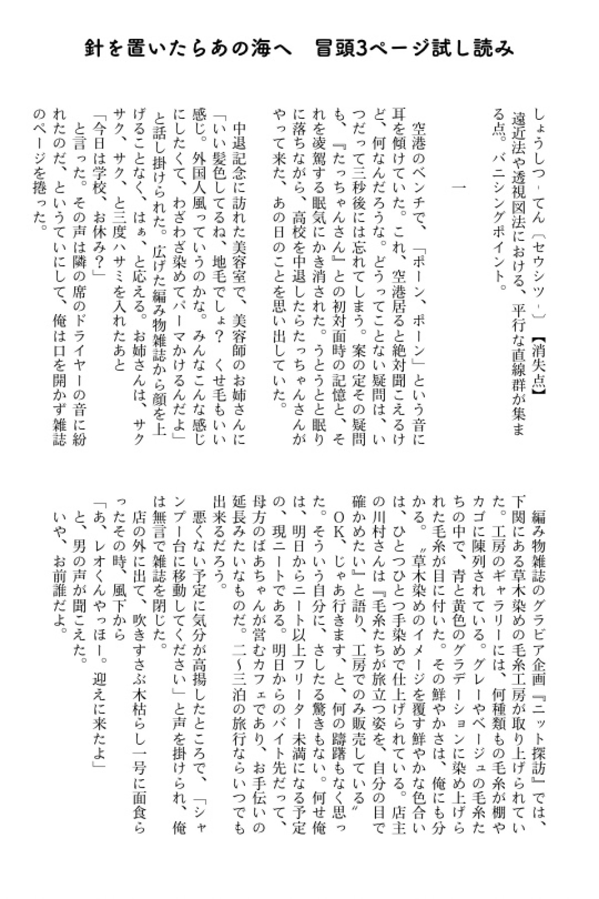 夢と人間関係への挫折感から高校を中退した少年・レオは、祖母の経営するニットカフェで編み物講師をすることに。隣の店のタトゥー彫り師・たっちゃんさんは、やたらとレオに馴れ馴れしい。