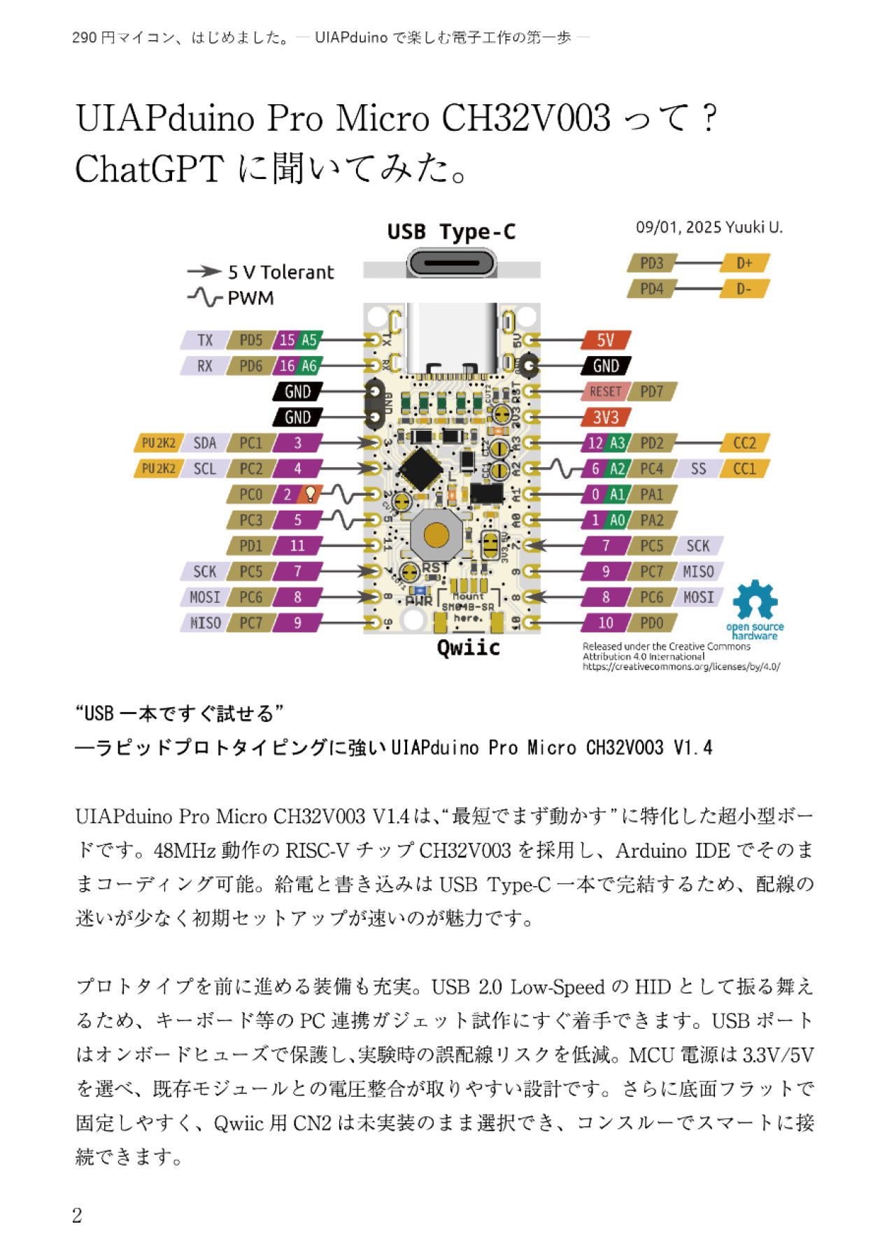 教育機関向けArduino互換ボード「UIAPduino Pro Micro CH32V003 V1.4」をテーマにしたエッセイ(体験記)です。