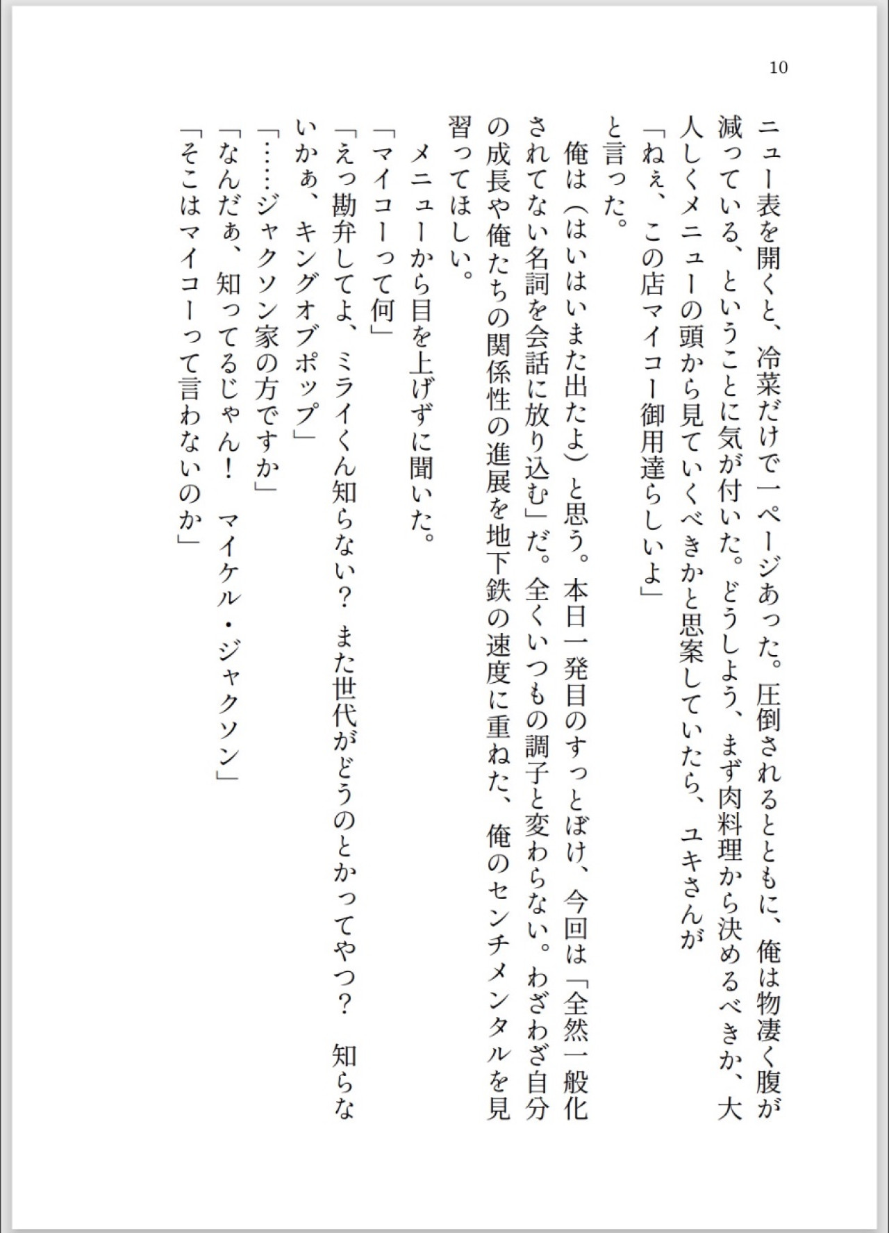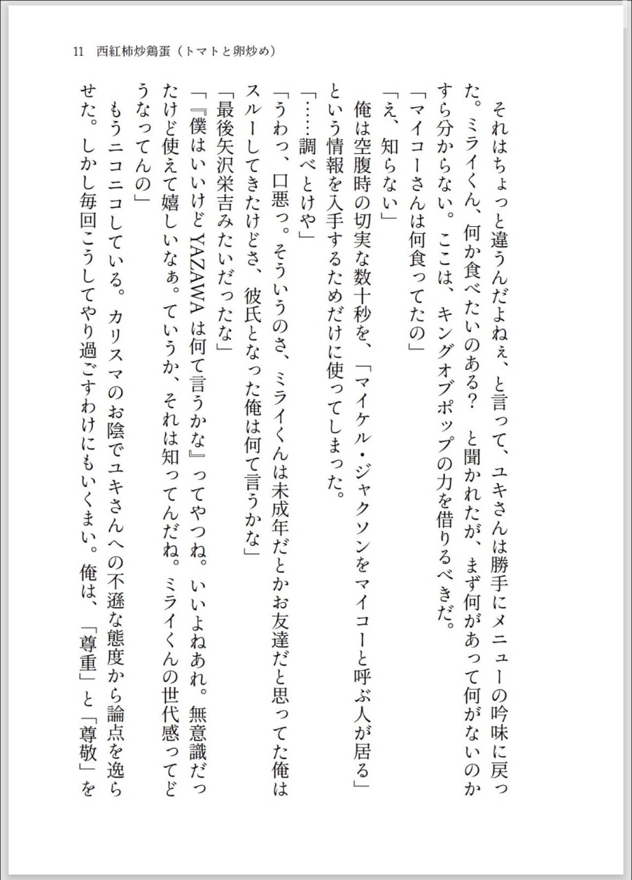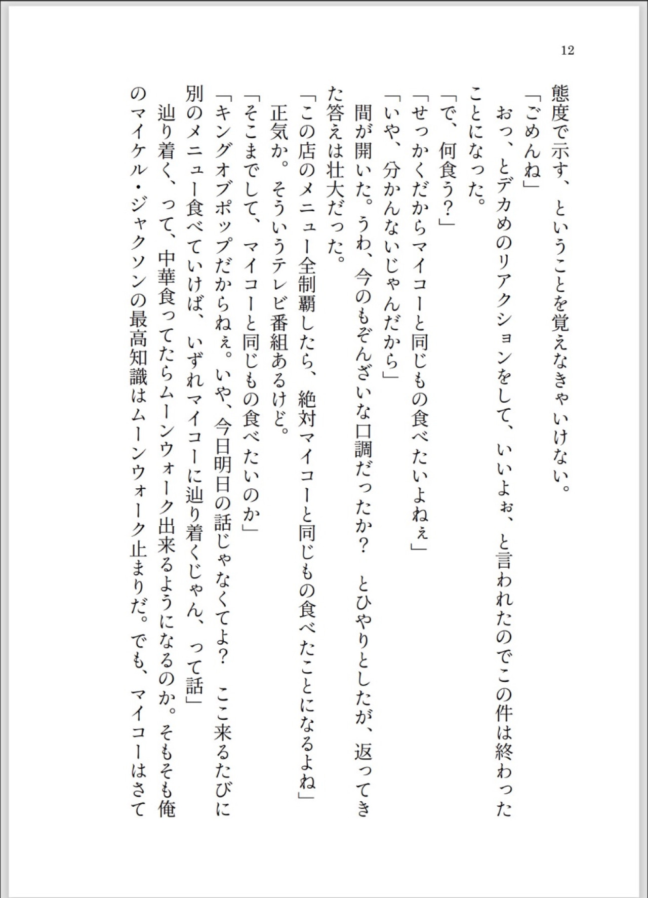 二人はユキヒロ宅の近所の町中華屋「楽楽」がKING OF POPマイコー・ジャクソンの御用達であったと知り、「確実にマイコーが食べた料理と同じものを食べるため、楽楽の料理全制覇しようぞ」と決意する。