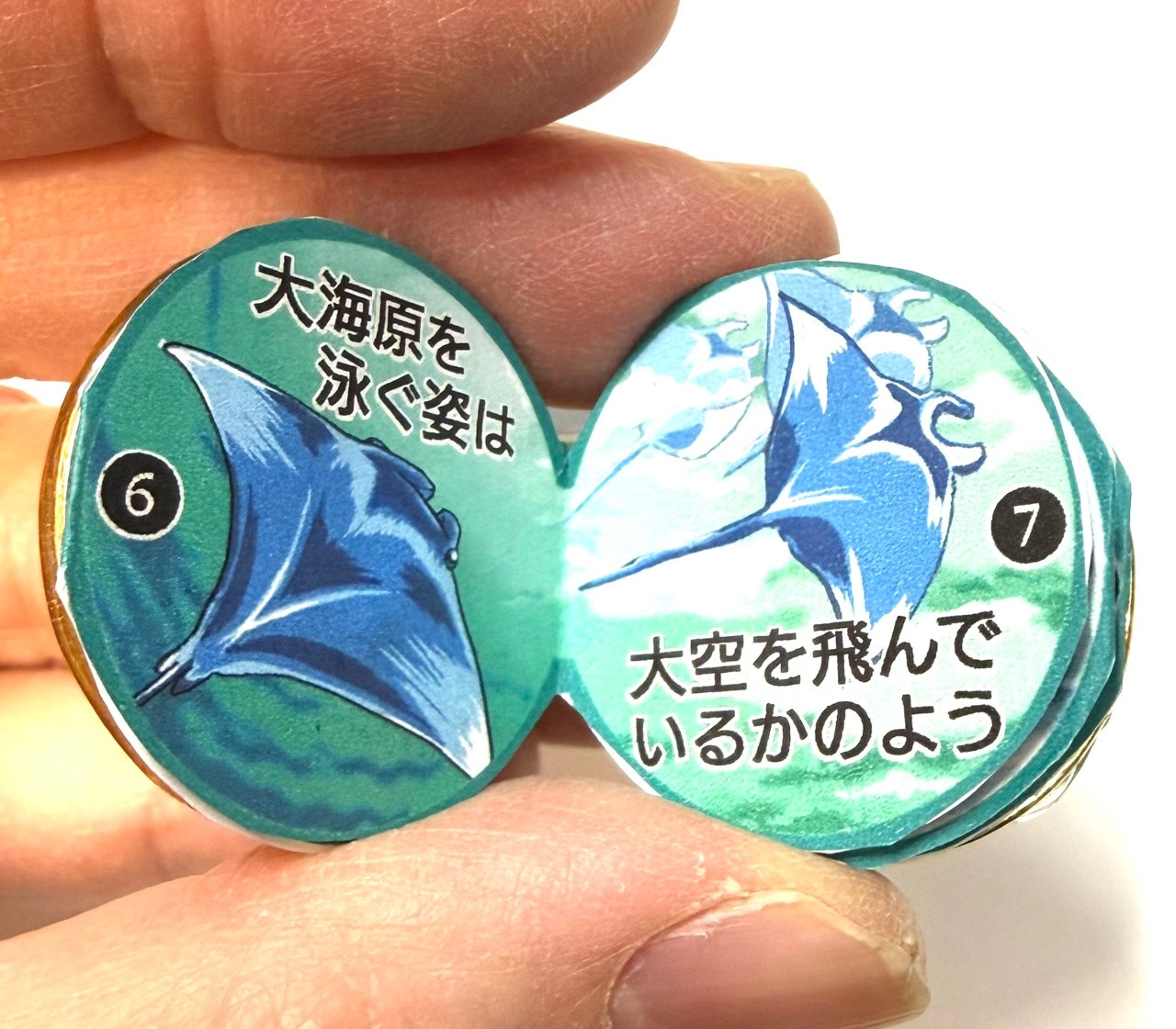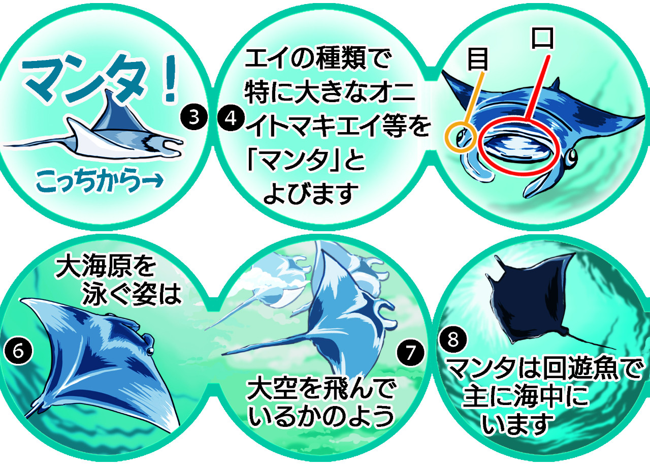 ・右からエイの話、左からマンタの話で、全体としては球体になっています。
