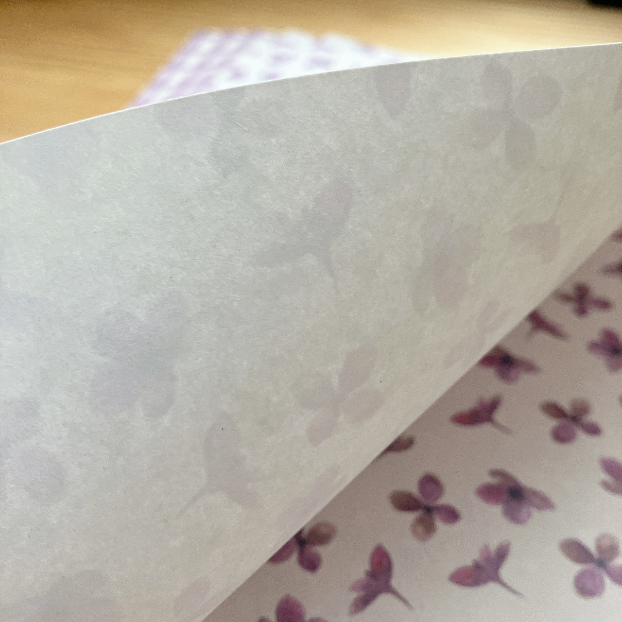 花柄の方はざらざらとした手触りのやや厚めの白い紙に、