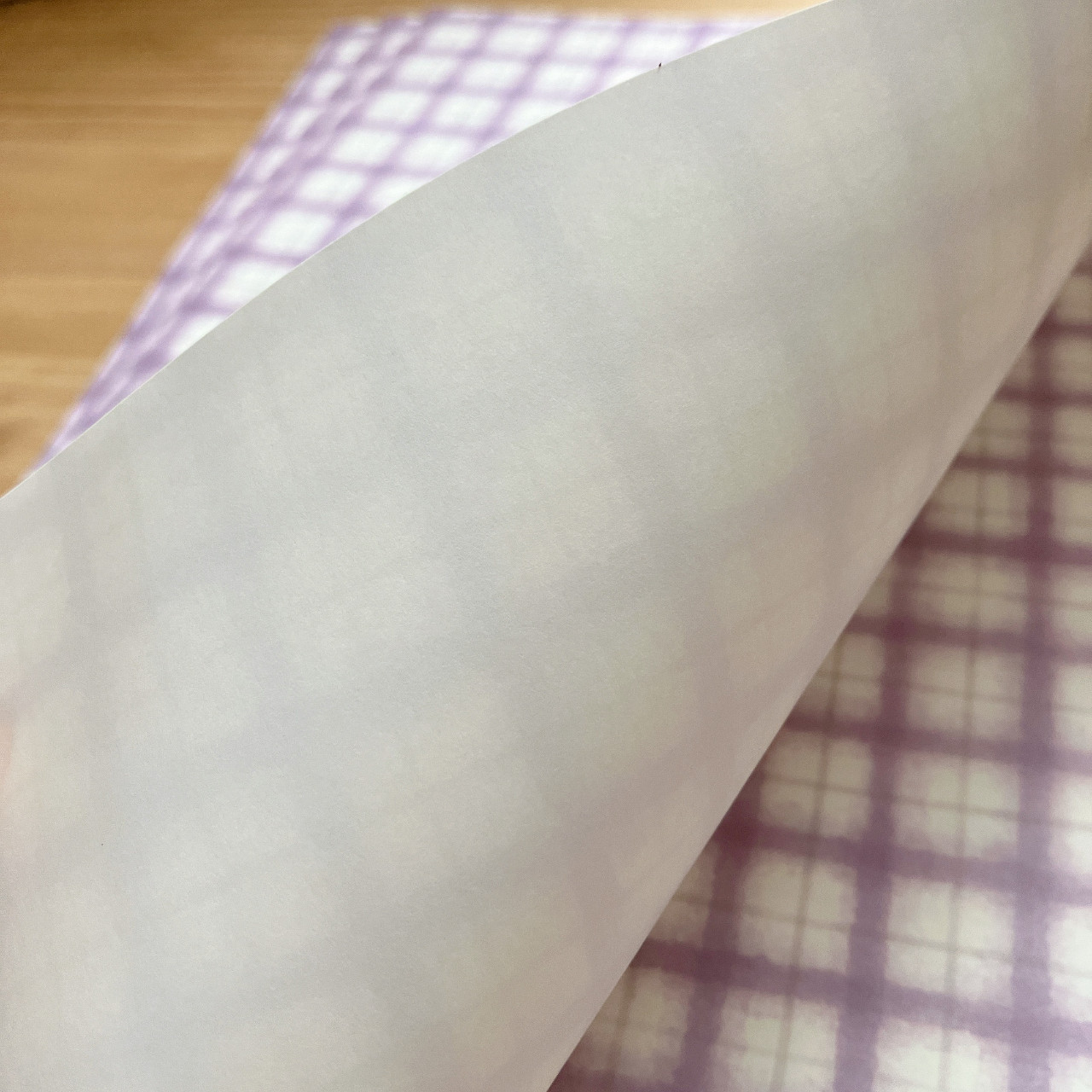 チェック柄の方はすべすべのアイボリー色の紙に印刷しています。