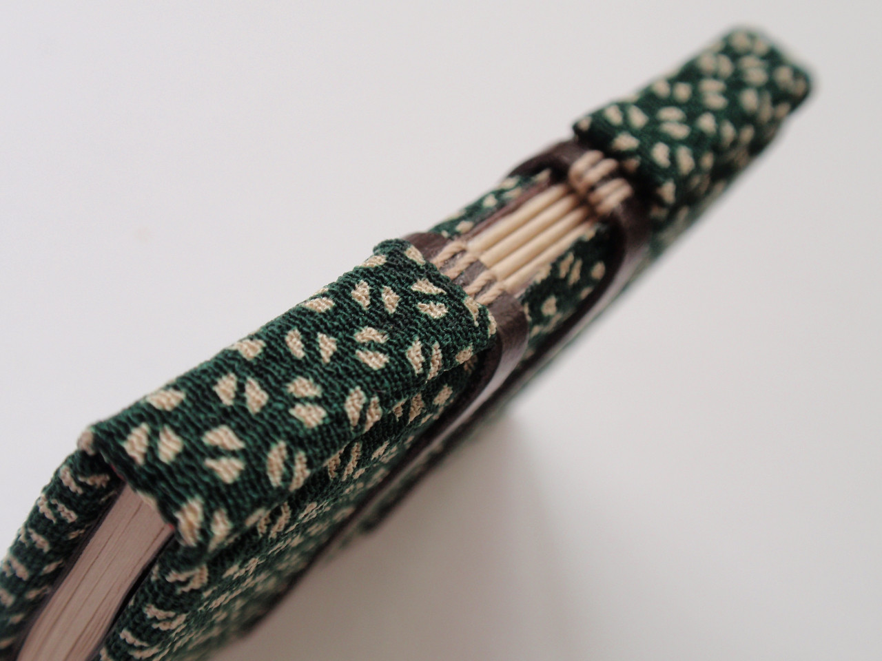 本かがり綴じの仕組みが見える、背空きの装丁です。