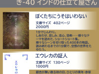 「短編・掌編」ジャンルにて、短編小説、掌編小説集、詩集、アンソロジーなどを販売予定です。