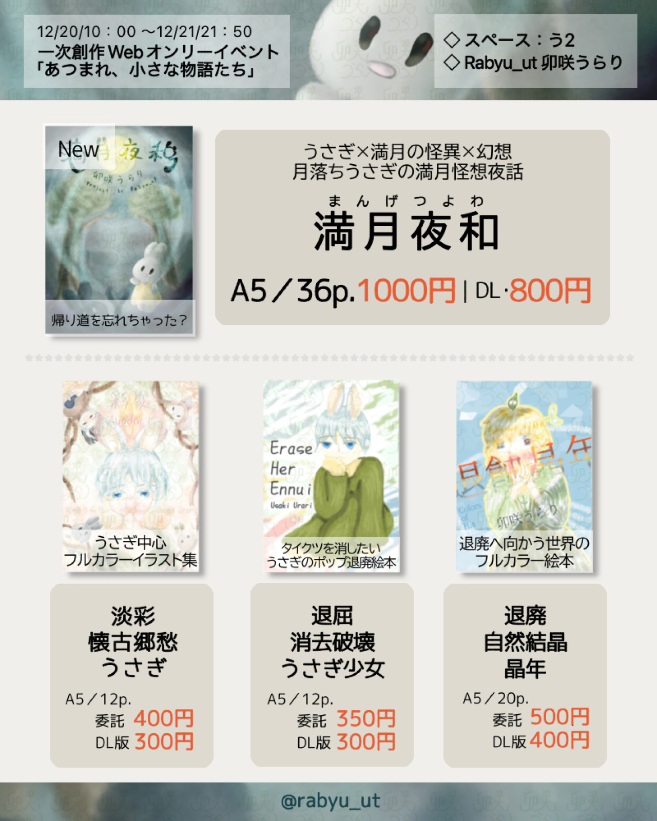 12/20-21開催の一次創作Webオンリーイベント「あつまれ、小さな物語たち」のお品書きです!