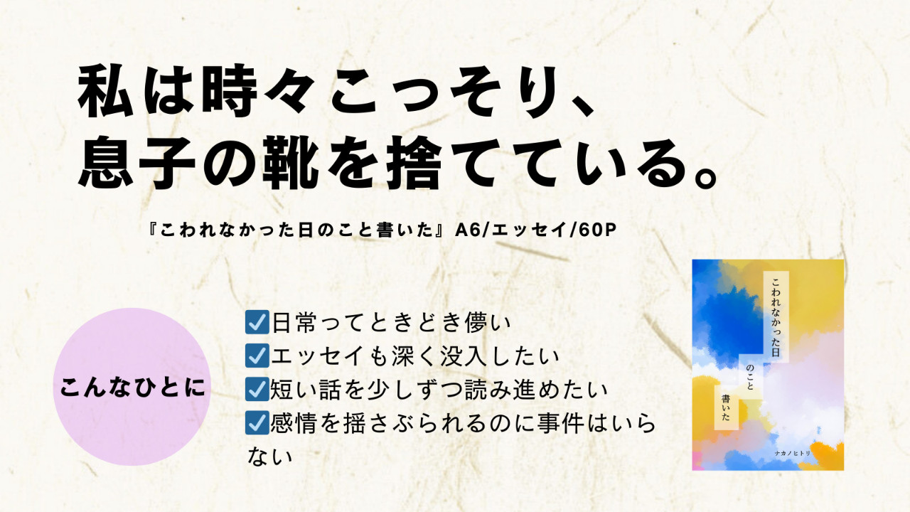 ☑日常をすくいとるエッセイが読みたい →『こわれなかった日のこと書いた』