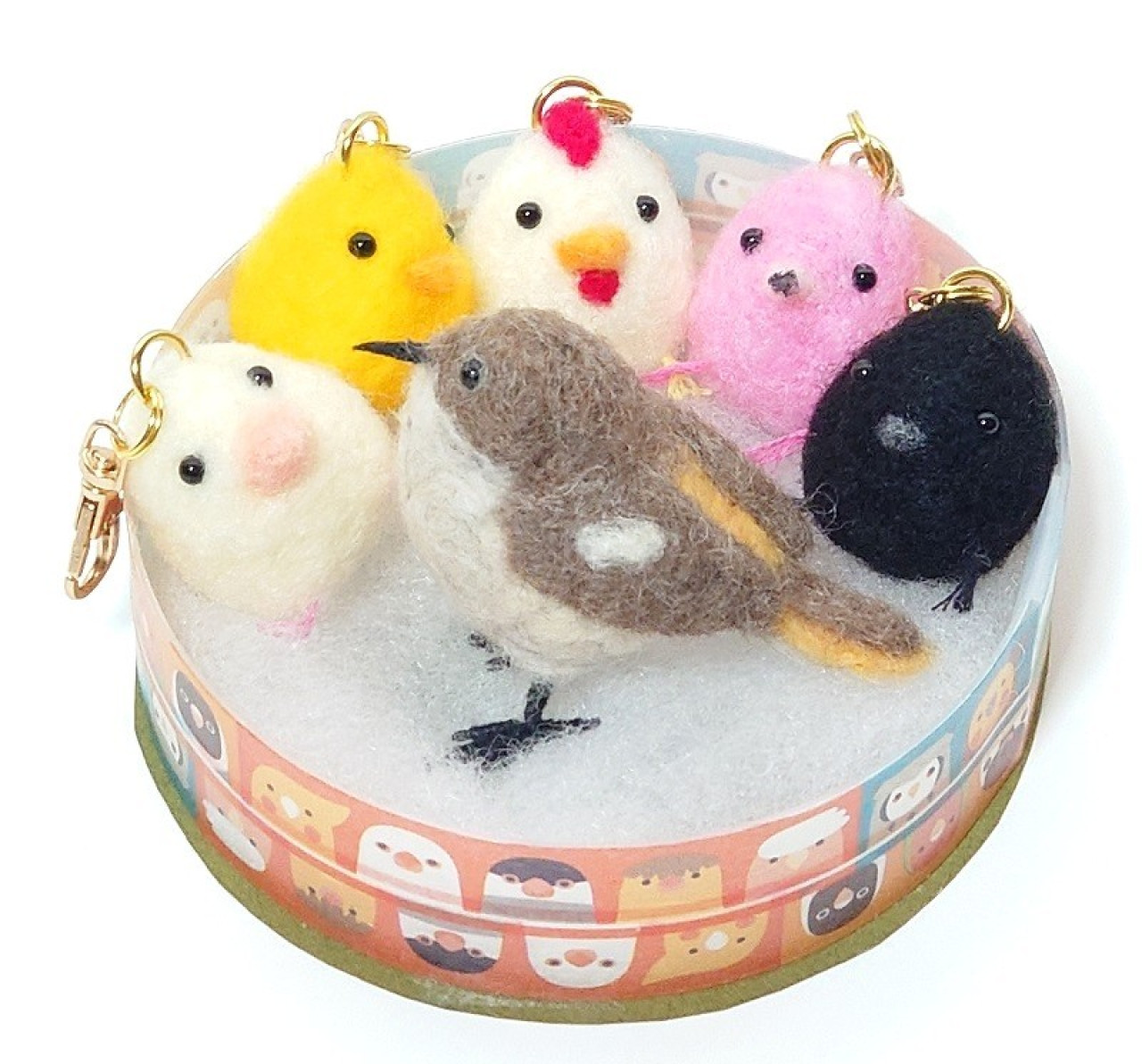 ・小鳥キーホルダー「ヒヨコ」「ニワトリ」「フラミンゴ」「白文鳥」「カラス」